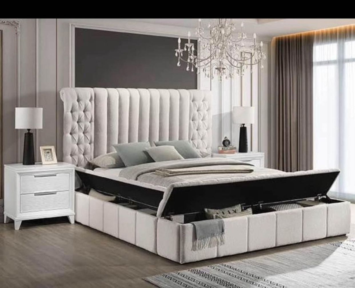 Brand new king bed size frame for $599 Last one in the stock Store address 3205 summit ave Greensboro Deluxe furniture