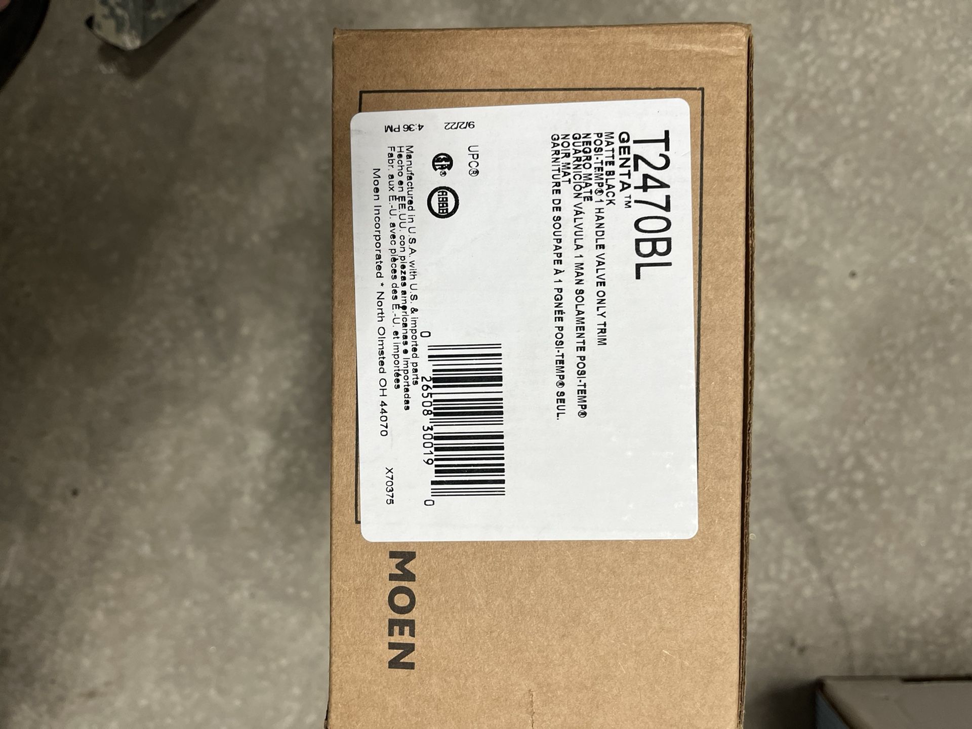 Moen shower trim with diverter matte black, 50 OBO