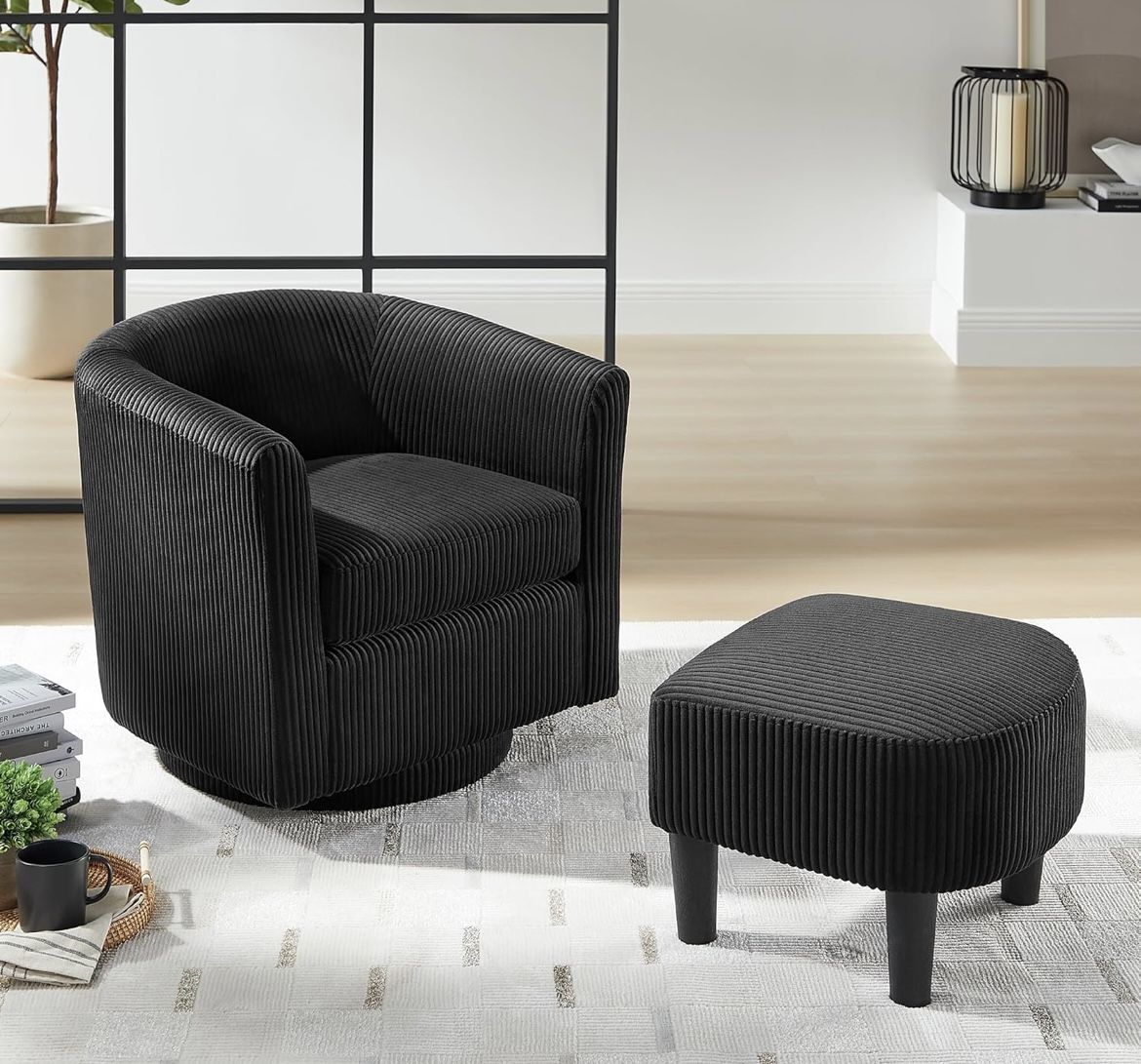 New 360° Swivel Barrel Accent Chair with Ottoman, Black Round Club Arm Chair