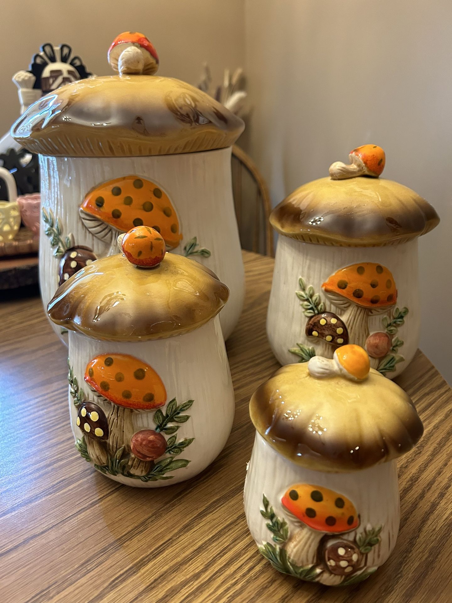 Vintage Sears Merry Mushroom Canister Set of 4 w/ Lids Classic Retro Kitchen MCM