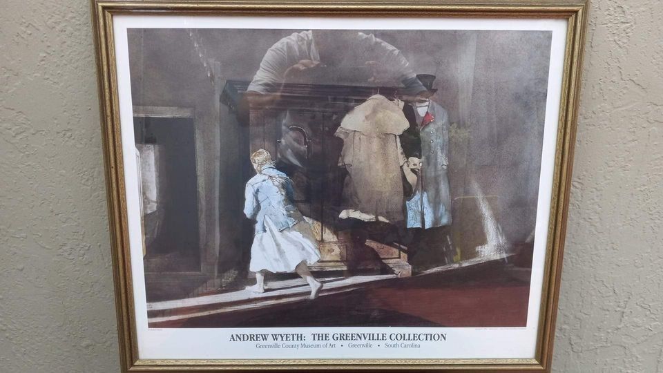 Add this to your family room and get ready for the compliments. This antique will bring a touch of history and mystery to anywhere you place it. Andrew Wyeth "Barefoot" print framed. Small tear in paper lining in back 21 3/4 x 26 x 13