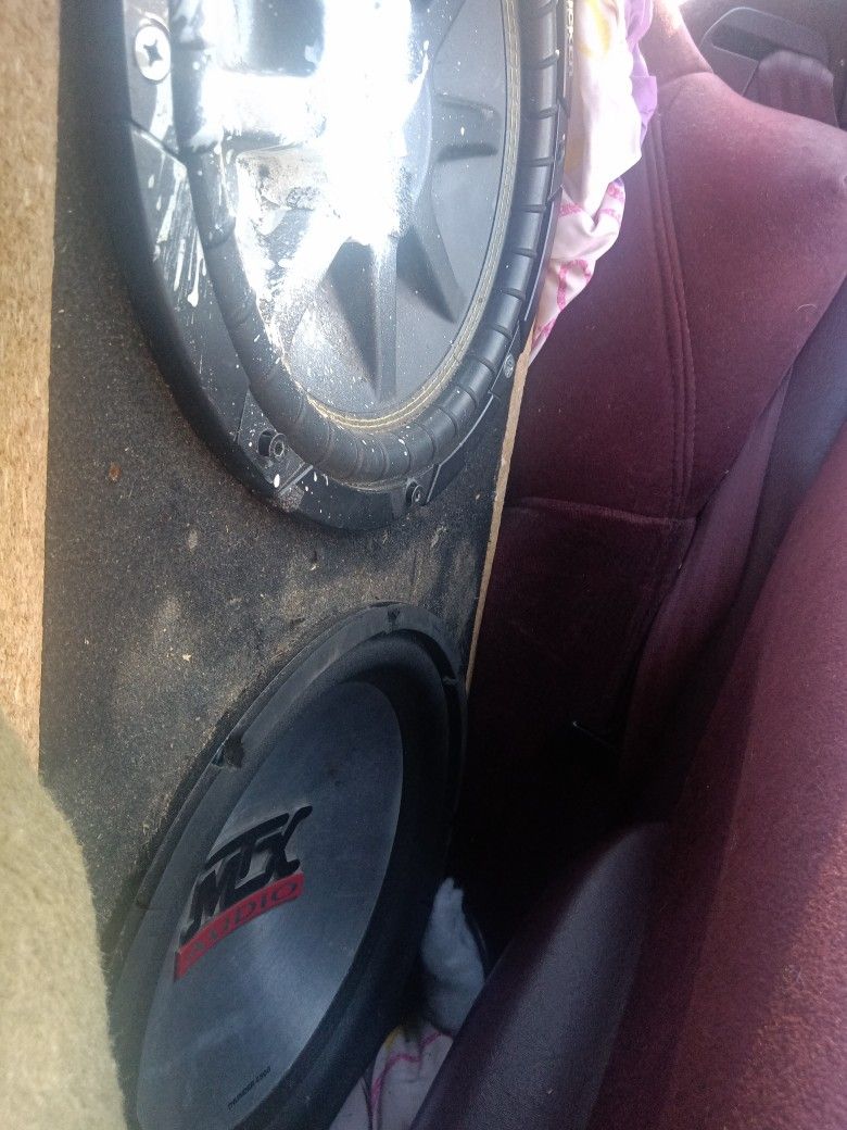 Kenwood amp the box isn't the greatest but theirs one mtx and 1 kicker