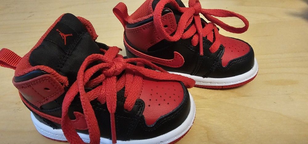 Youth Nike Air Jordan 1 Mid 'University Red/Black' Sneakers Sz 4c