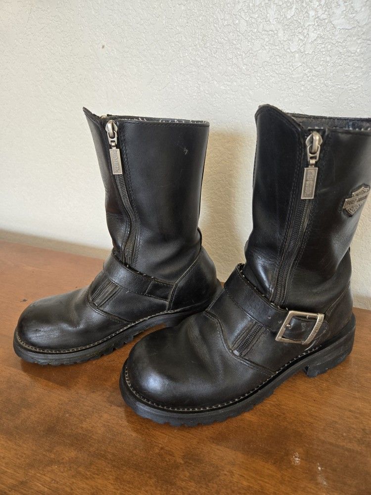 Harley Davidson half calf leather boots. Double zipp Buckle across Harley Emblem on upper side Oil resistant Model #81994 Size 7 Really good shape. Non smoking home Just $60 cash Pick up near Ironwood and Broadway in Apache Junction