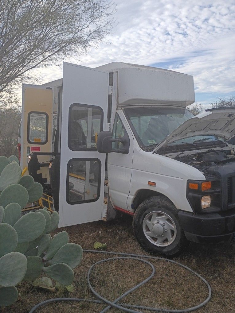 Up for sale is a fully functional Ford E350 Econoline wheelchair van with hydraulic lift front AC in the rear all gauges work 4-speed automatic gas engine, it does have 267 k but it's all highway miles strong motor and transmission. This van is located 15 miles north of Uvalde Texas at chalk bluff asking 5K or best offer looking to trade for pickup truck (contact info removed)
