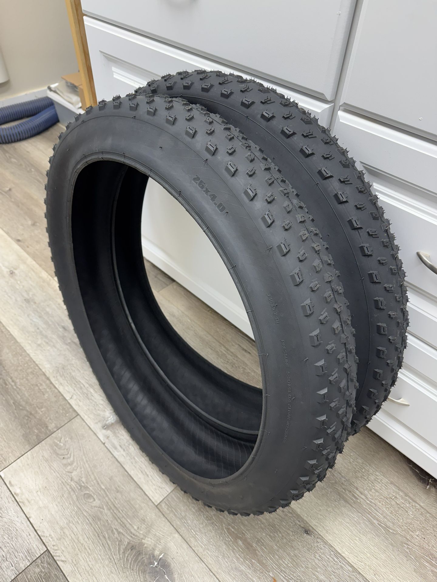 26” x 4.0” tires. Barely used. These came stock on my e-bike and I replaced them shortly after getting the bike.