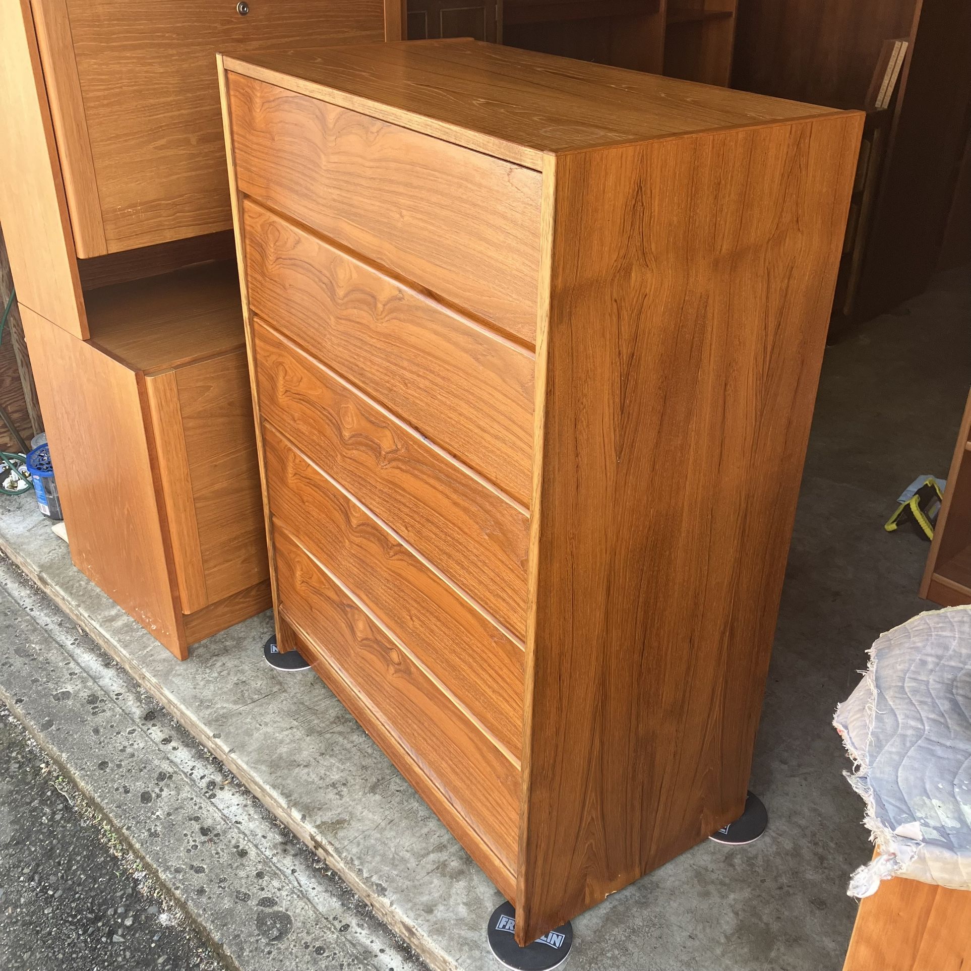 Vintage Mid Century Modern Teak Highboy Dresser Fair vintage condition with signs of wear from regular use with scratches and watermarks on top and around edges Has small chips on the bottom of each side and a few scratches and water ring on top H:44.75β x W:33.5β x D:18.25β (Heavy) Pickup in Bellevue π π Free curbside delivery within 5miles of 98007 π΅ Cash preferred but I accept all payment apps π Feel free to follow and check out my profile for more mid century furniture, art, and home decor. New inventory weekly π Discounts available for bulk purchases! Keywords: (Disregard) Mid Century Modern, minimalist, functional, organic, geometric, sleek, innovative, retro, elegant, timeless, simple, natural materials, bold colors, clean lines, Scandinavian influence, iconic, versatile, open spaces, artistic, affordable, authentic, stylish, asymmetrical, handcrafted, bright, comfortable, durable, modular, statement, unique, practical, sophisticated, teak, wood, walnut, high quality