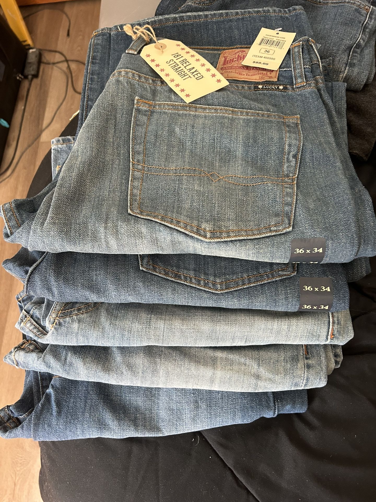 Lucky 181 relaxed straight, 36 x 34. 2 new w tags. 3 barely used. $20 ea