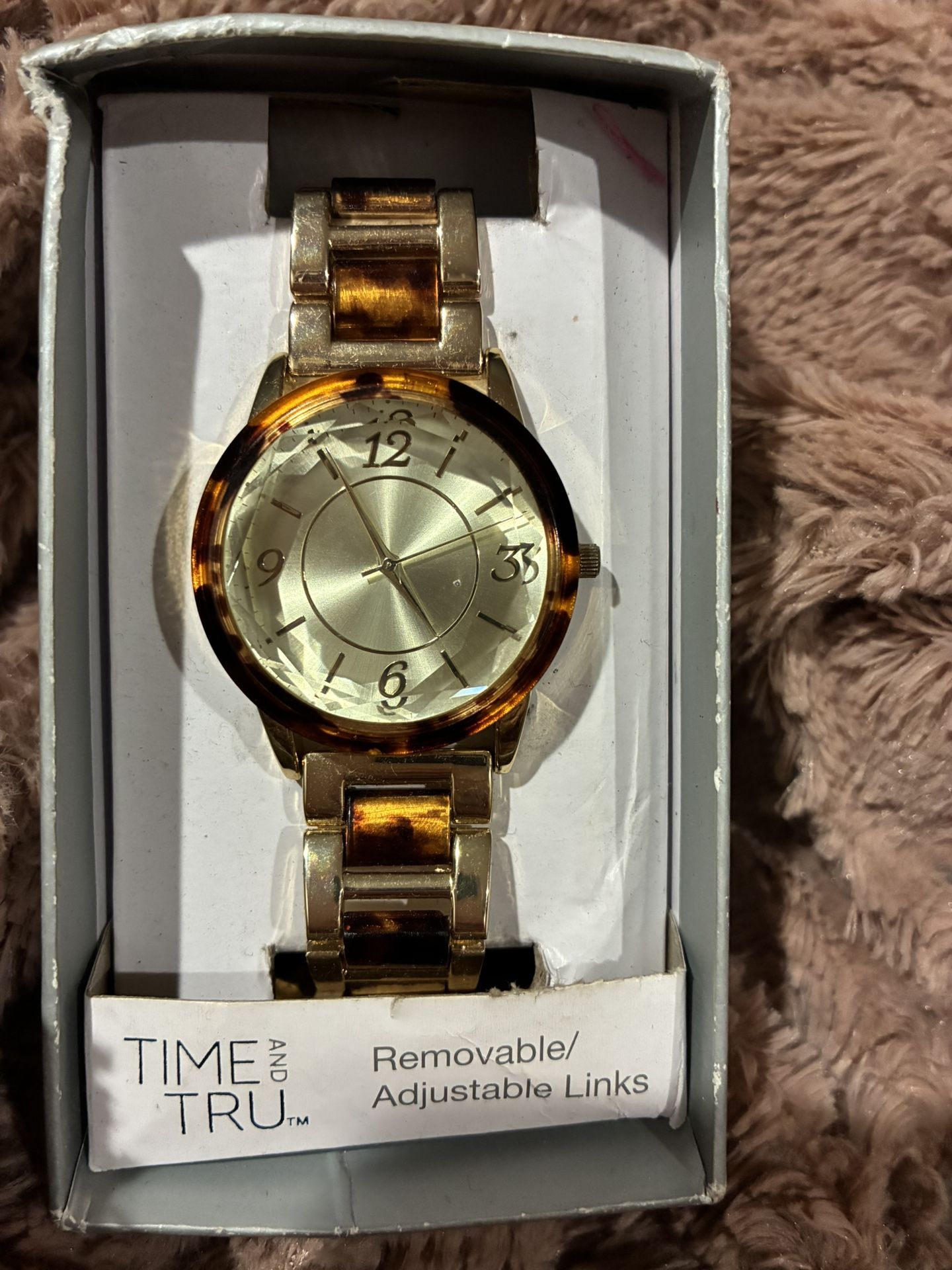 Time & True Tortoise Gold Tone Adjustable Watch NEW Needs Battery