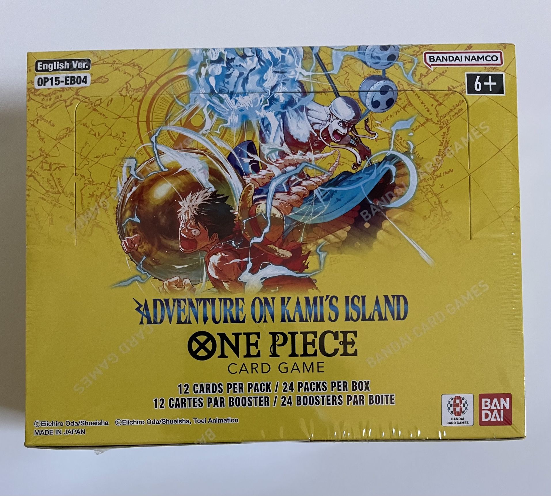 Sealed One Piece TCG Booster Box. Adventure on Kami’s Island (OP15-EB04). 24 booster packs with 12 cards per pack.