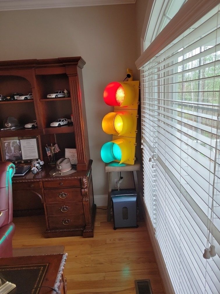 This is a real traffic light for sale. The light has been wired to plug into a regular electrical outlet. All three lights, red, yellow and green all work. It makes a nice addition to a gameroom or office area. The light also comes with a bracket for hanging from a ceiling. The light has been fully restored and painted.