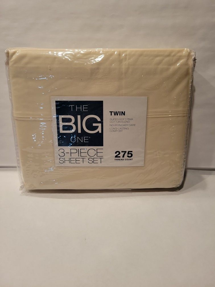 275 thread count from Kohl's. Top sheet. Fitted sheet and 1 standard pillowcase. Ivory color , and I never opened the package.