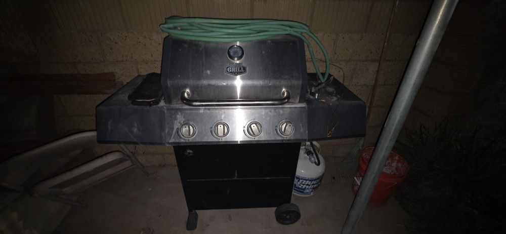 It works, is used but it worksWill include the Gas thank and the charcoal.