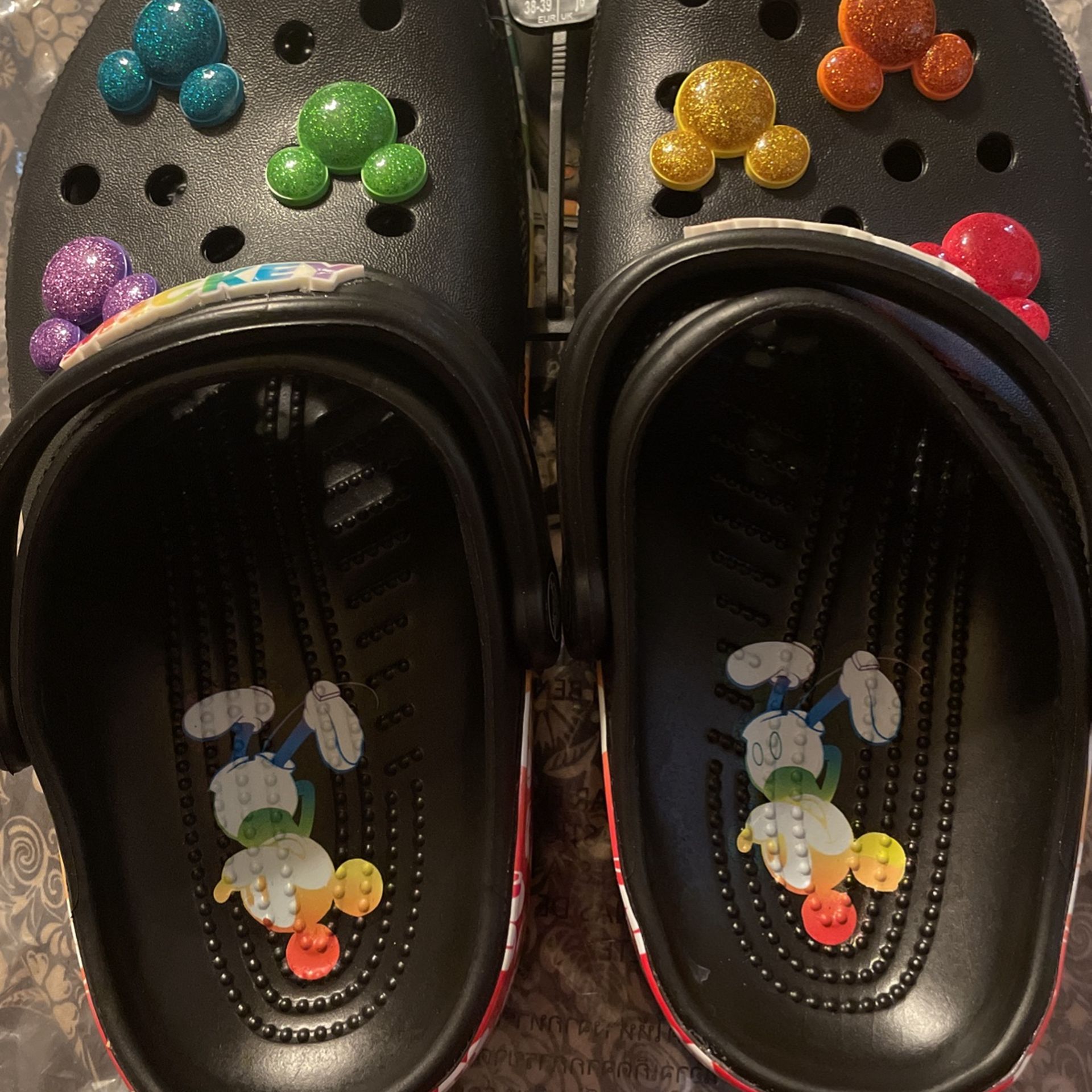 Jr 6/womens 8 nwt Disney Mickey rainbow crocs. Pick up off Walzem/35 windcrest area.