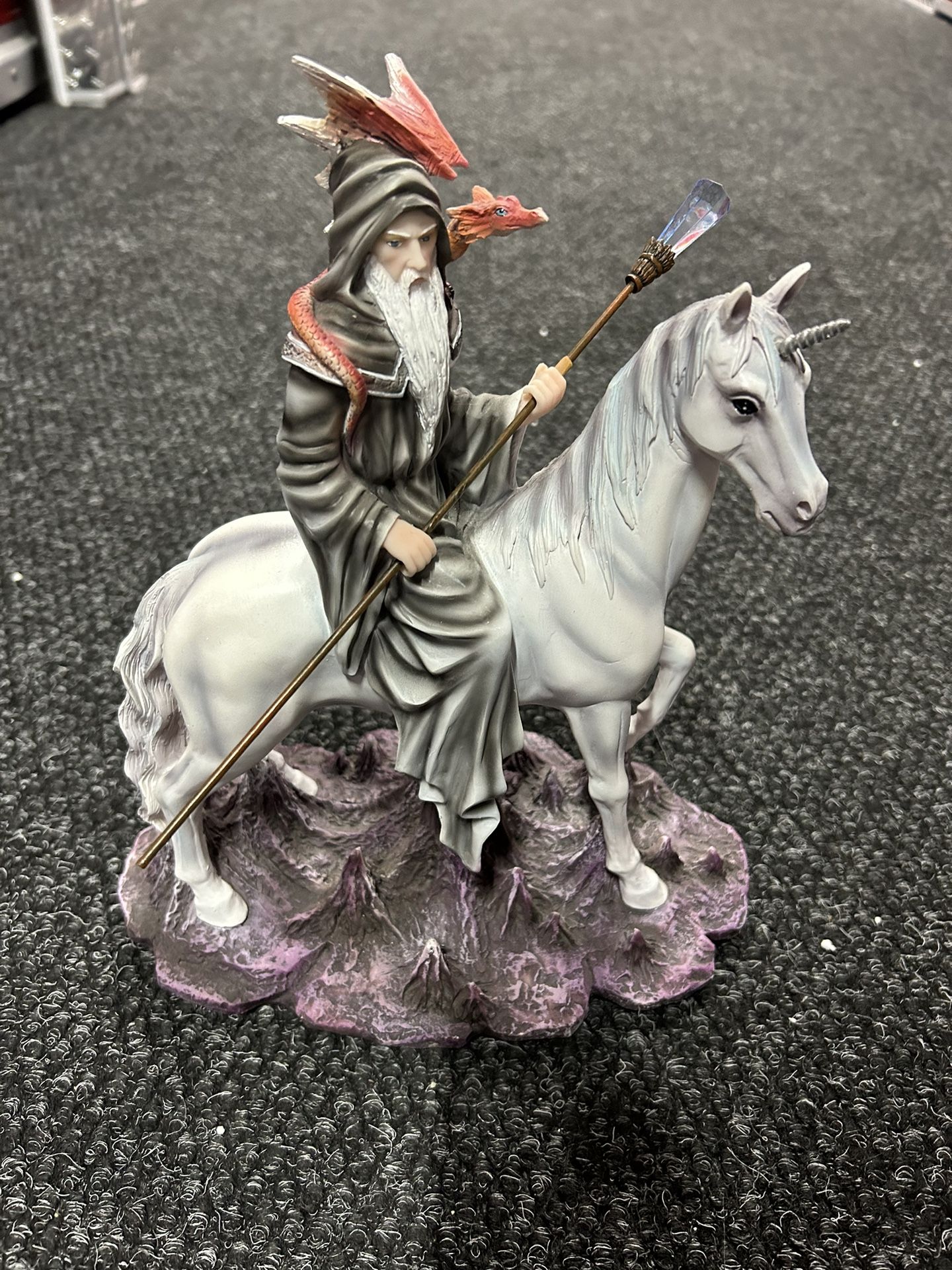 Staff can be removed from the wizard’s hands. I don’t have a box for this item but I’ll provide bubble wrap coating for transit at pick up.