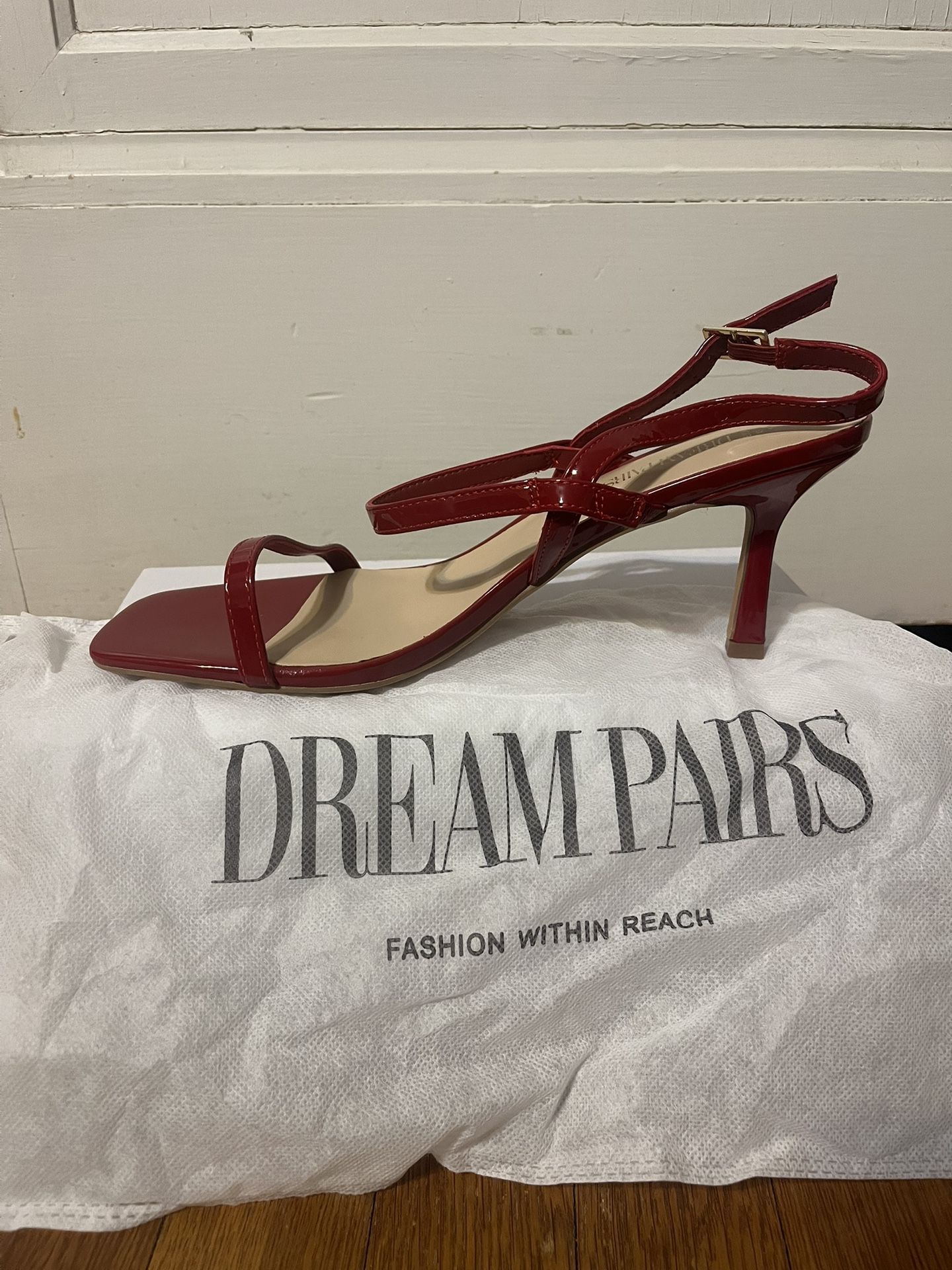 Size 11, squarish toe. Ruby/maroon/deep red. 3 inch heel. Leather.