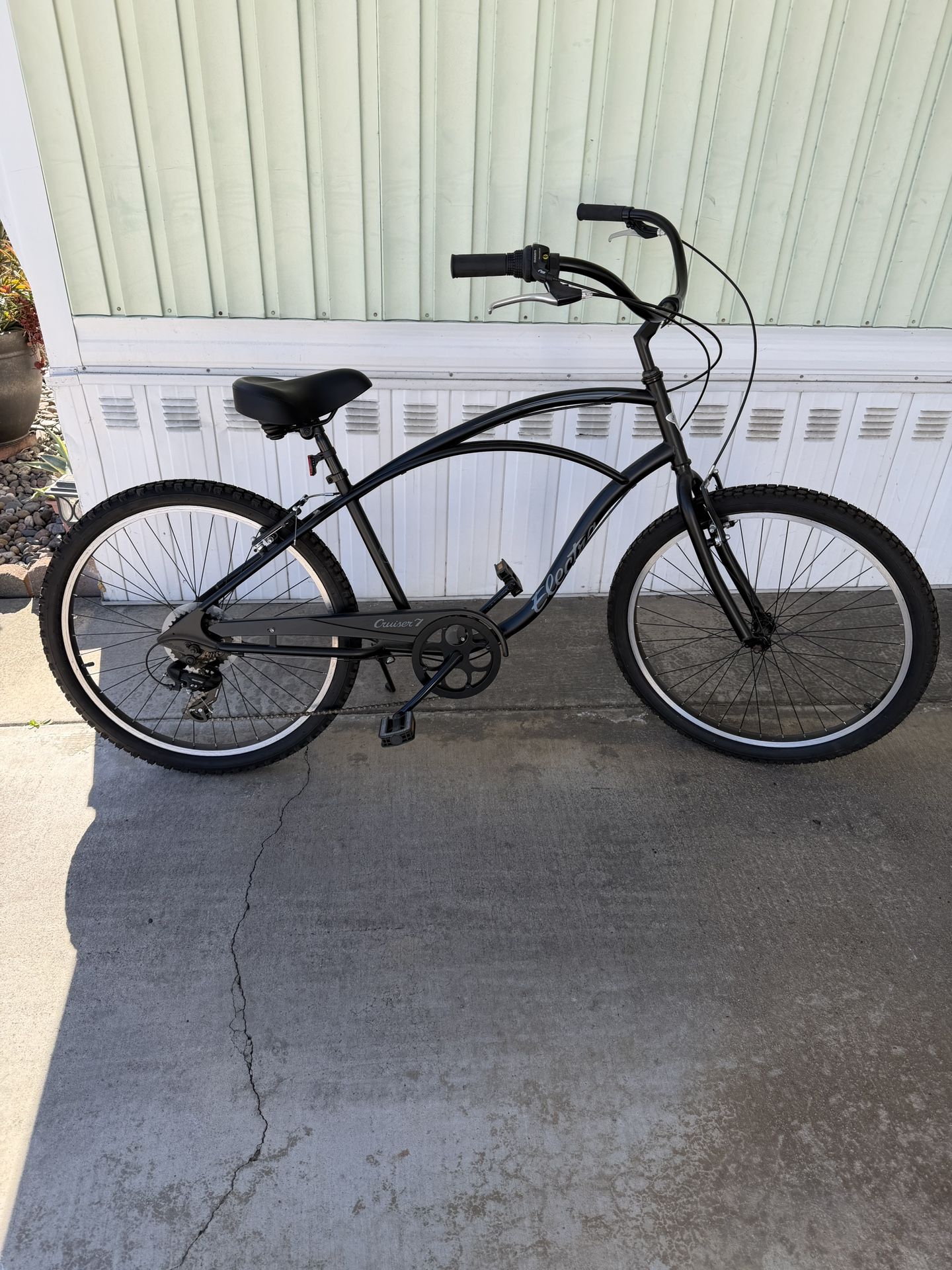 Introducing the Electra Cruiser 7D Step-Over 26 (Regular) 2023, the ultimate bike for anyone looking to enjoy a leisurely ride without compromising on style or comfort. This bike, designed for casual cruisers and fun-loving riders, makes every journey a delightful experience. Perfect for zipping around the neighborhood, commuting, or just taking a peaceful ride along the beach, the Cruiser 7D is versatile and accessible for all skill levels. The frame of the Electra Cruiser 7D is crafted with a sturdy yet lightweight construction that offers stability and longevity. Its step-over design provides easy mounting and dismounting, making it an excellent choice for riders of all ages and skill levels. The 26-inch wheels are well-sized for smooth handling, ensuring that whether you're navigating city streets or hitting the local parks, you’ll enjoy a comfortable ride every time. Equipped with a reliable groupset, the Cruiser 7D offers a 7-speed gearing system, allowing you to select the perfect gear for your desired pace and terrain. This range is particularly beneficial when tackling those slightly steeper inclines or cruising downhill, making it easy to maintain a comfortable cadence regardless of your surroundings. Combined with its lightweight frame, this bike strikes a balance between fun and functional, making it suitable for relaxed rides as well as more ambitious outings. The handy front and rear brakes provide solid stopping power, giving you confidence as you navigate through city traffic or hop off curbs. These brakes are not only efficient but easy to control, enhancing your overall safety—one aspect that is always a priority, whether you're a beginner getting your footing or an experienced rider looking for a dependable bike for everyday use. The Electra Cruiser 7D also comes with some great accessories, adding extra value to your ride. The bike features a comfortable saddle designed to offer support on longer rides, while the ergonomic handlebars promote a relaxed riding posture, minimizing strain on your back and shoulders. With these thoughtful touches, you can enjoy longer rides comfortably. You’ll find that many riders appreciate the Cruiser 7D for its well-rounded design and ease of use. Users rave about its style, comfort, and smooth ride, making it a popular choice for those looking to enjoy leisurely cycling. Positive feedback highlights its ability to make every ride enjoyable, along with its sleek aesthetic that turns heads wherever you go. In conclusion, the Electra Cruiser 7D Step-Over 26 (Regular) 2023 is more than just a bike; it’s a ticket to affordable freedom and effortless fun. Perfect for anyone who enjoys simple and enjoyable rides, it’s ready to help you embark on new adventures and create lasting memories, all while ensuring a comfortable and smooth ride. Whether you're new to cycling or a seasoned rider, this bike promises reliability and comfort, making it a must-have addition to your cycling gear. ...Show less Specs Brakes Brake Alloy linear pull Brake Lever Alloy, 3-finger Cockpit Stem Alloy classic Headset 1'' steel threaded Handlebar Electra café, 690mm Grips Comfort kraton General Frame Electra classic 6061-T6 aluminum, Flat Foot Technology® Groupset Cassette 14-34t 7-speed freewheel Rear Derailleur Shimano Tourney TY300 Crankset Classic steel one piece, 170mm, w/44t chainring/double chainguards Pedals Resin platform w/non-slip tread Shifters Shimano Tourney Revo 7-speed twist w/optical gear display Bottom Bracket Square taper, loose ball Chain / Belt KMC Z7, 7 speed Wheels & Tires Hub Steel 36h, nutted axle Tires RetroRunner 26x2.125'' Wheels Alloy 36h Saddle Saddle Electra comfort w/elastomer springs Seat Post Alloy 27.2x350mm