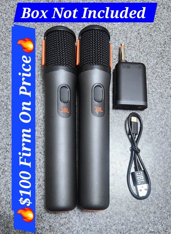 🔥$100 Cash Only/ Efectivo Solamente 🚫 FIRM ON PRICE/ NOT NEGOTIABLE/ NOT TRADES 🚫 PRECIO FIRME/ NO NEGOCIABLE/ NO DOY MÁS DESCUENTOS ⭐️ Open-box new condition, includes: 2 Mic And The Adapter ( Box Not Included) ⭐️ Pick Up Only in East L.A City (City Terrace) ⭐️ Open-box Como nuevos, incluye: 2 Micrófonos y el adaptador ( No incluye caja) ⭐️ Recogida Solamente en el Este de Los Angeles (City Terrace) ⭐️ JBL PartyBox - Micrófono inalámbrico, 2 micrófonos inalámbricos digitales, batería recargable (20 horas - 700 mAh), voz clara, sonido nítido, conexión estable de 2.4 GHz, 30 meters of range