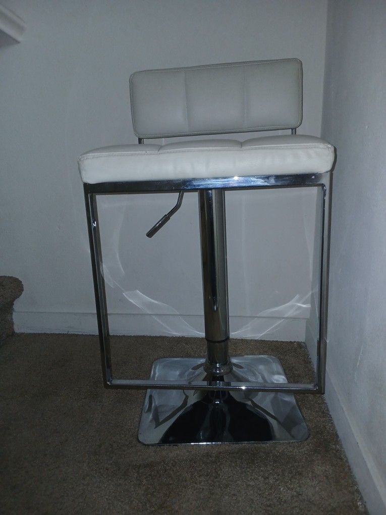 Bar Stools (2) featured in a sleek white upholstered seat with adjustable height of 24 to 33 inches. Still in good condition edition with normal wear and tear. $150 for Both Bar Stools or obo.