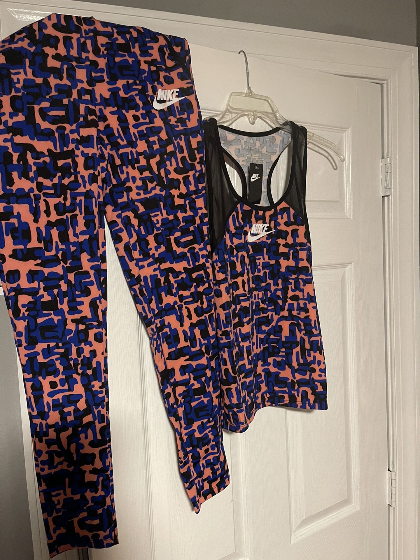 Brand new Nike two piece outfit, never worn, tag still on, sleeveless top and tights, size medium