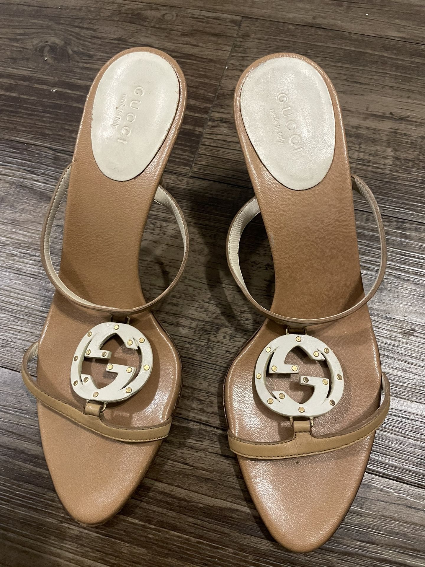 100% Authentic Gucci Sandal Heels Size 37.5, womens 7 (Narrow) Professionally Replaced new heel tips too😊