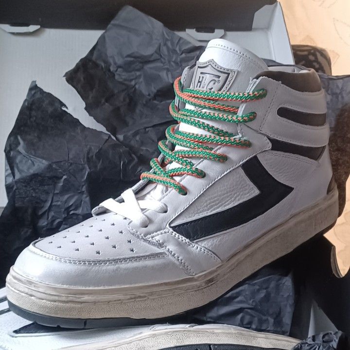 This is for 1 Pair Of Brand New Genuine Legitimate HTC Los Angeles Hollywood Trading Company vintage High Top Sneakers Shoes Size 12 USA,super π!