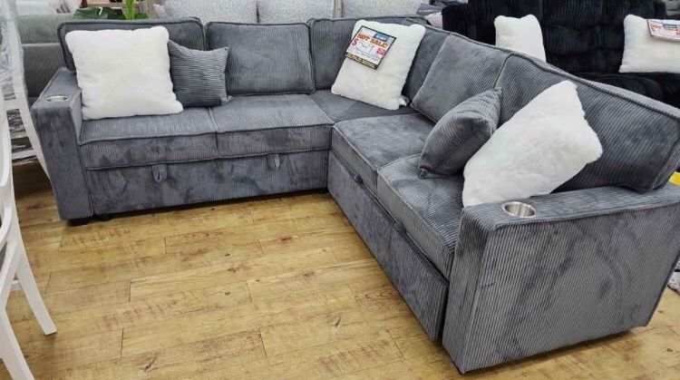 Stylish 3-pc Convertible Sectional Sofa Dark Gray Corduroy (No Tax‼️)