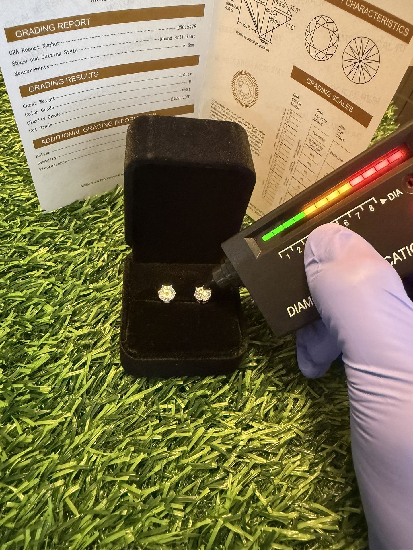 Brand new, never worn. These earrings are moissanite, and 925 sterling silver. It passes the diamond tester and I will provide the GRA certificate of authenticity. I can deliver. 70 or shoot me your best offer! Completamente nuevos, sin estrenar. Estos pendientes son de moissanita y plata de ley 925. Pasan la prueba del detector de diamantes y entrego el certificado de autenticidad GRA. Puedo entregarlos a domicilio. 70 o hazme tu mejor oferta!
