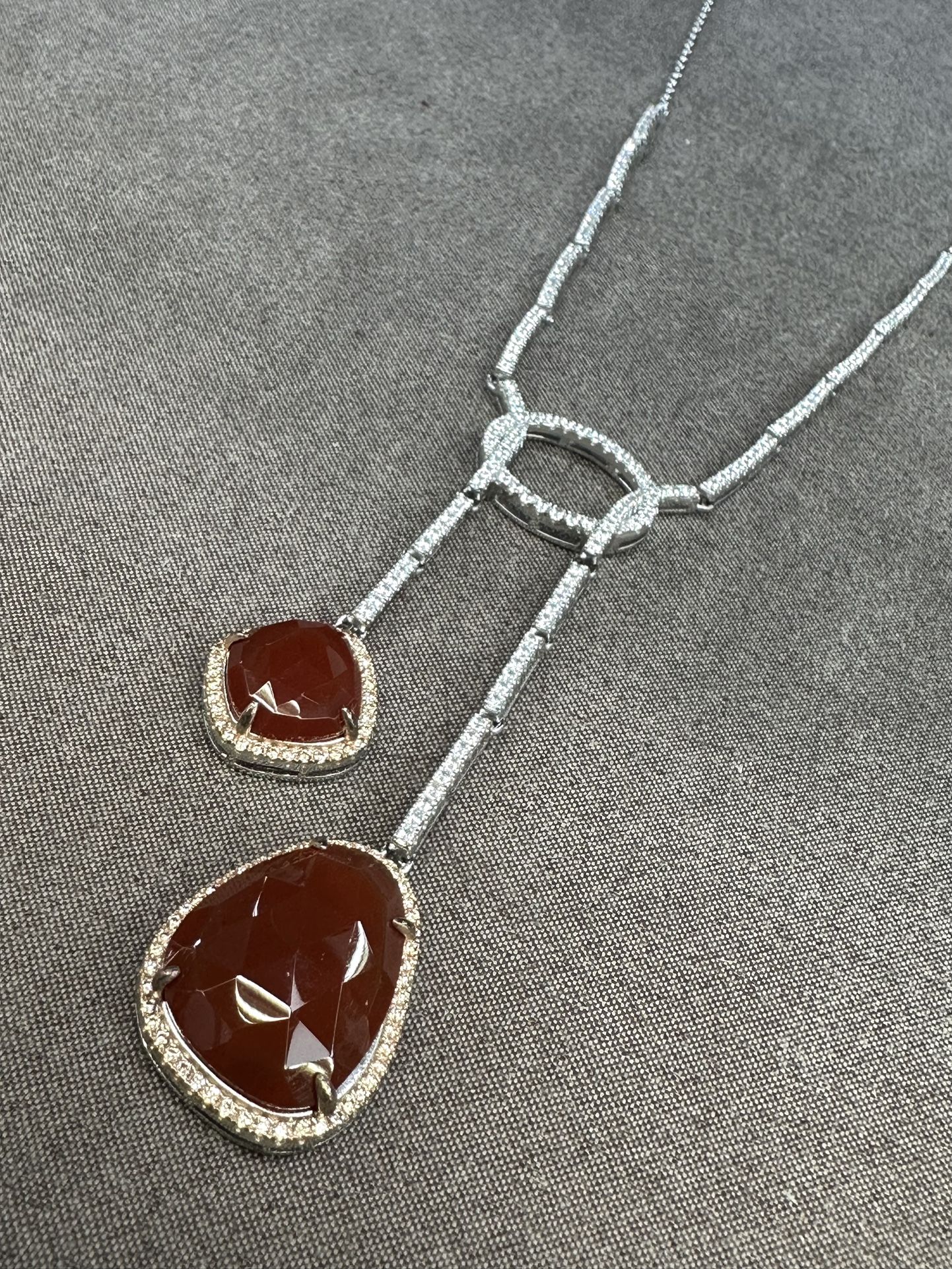 YAGI sterling silver & rose gold vermeil red quartz necklace, adjustable length 16”-18” Elite Fine Jewelers Tempe, AZ