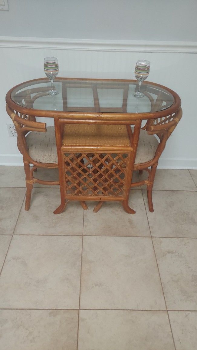Sturdy set with glass top table. Storage under top.