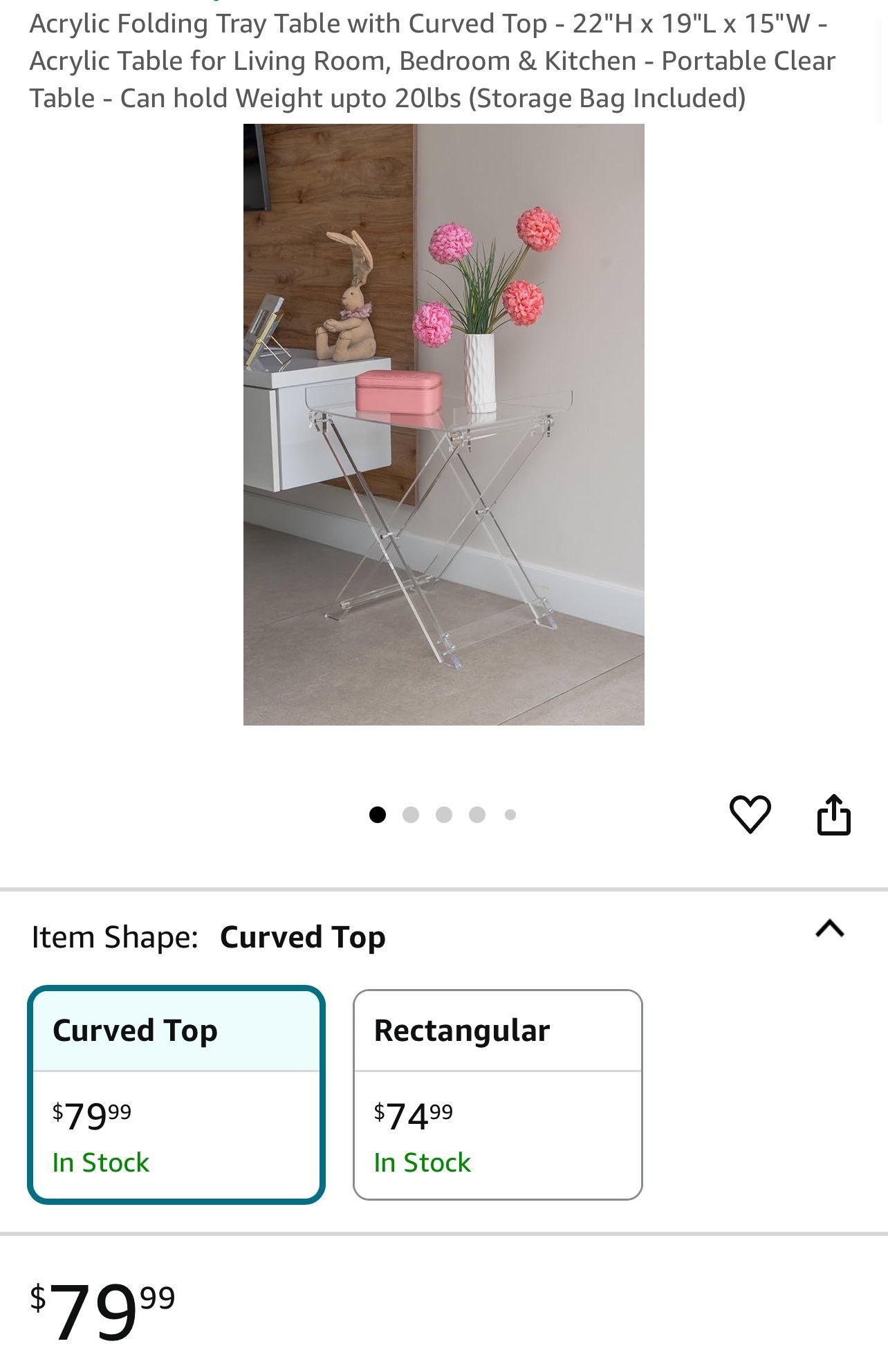 Clear Acrylic Folding Tray Table Brand New/ Never Used Perfect Condition Product Dimensions: 15"D x 15"W x 22"H Item Weight: 10 Pounds Original Price: $79.99 If post is still up, item is still available!