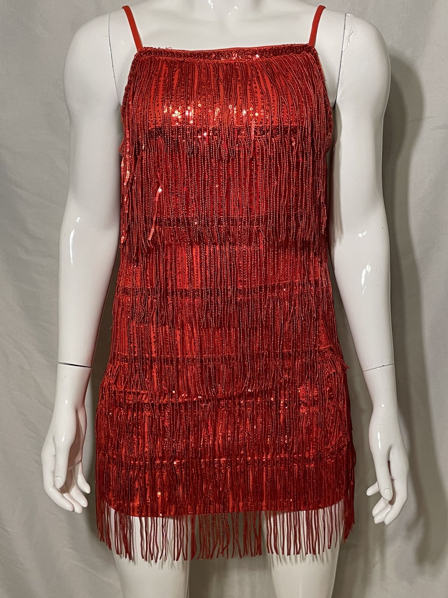 Red sequin fringe dress ladies size six. Thin adjustable straps. Flapper or roaring 20’s theme party or Latin dance. Location near Greenway Road and 40th Street Phoenix Arizona.