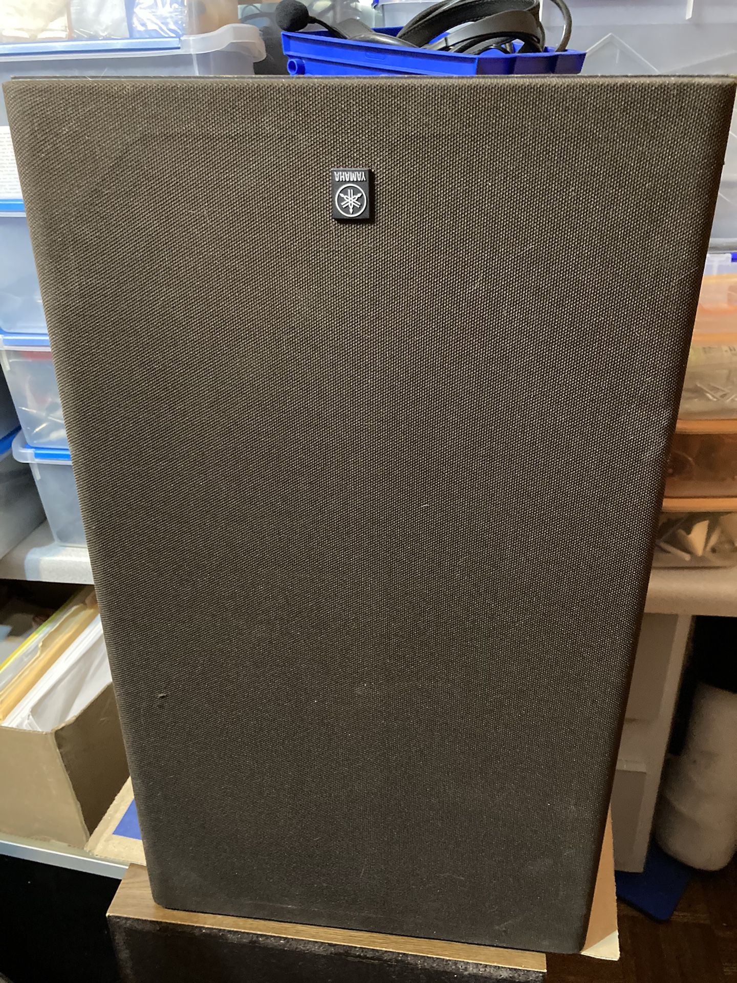 Pair of Yamaha NS-325 speakers. Dimensions are H-24 inches, W-14 inches, D-11 inches. Wood cabinet with removable brown cloth. There are 2 tone control knobs. Rated wattage is 35 with a max of 70. The drivers are 8 ohm. 10 inch woofer, 4 inch ( HRC ) mid, and a tweeter.