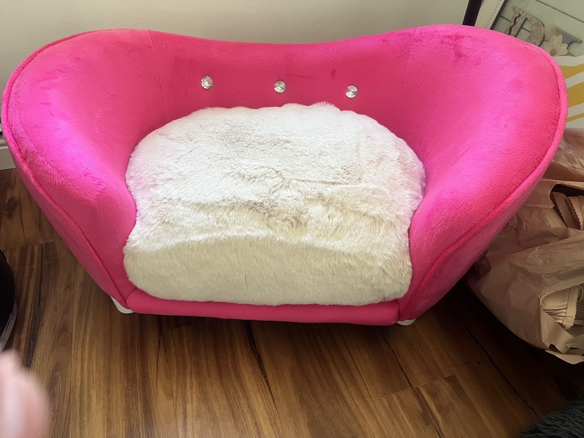 New dog lounge for your spoiled doggie… Hot pink velvet with three large diamond buttons and white fur Brand new never used and I paid $80 for it For pick up immediately - only pick up