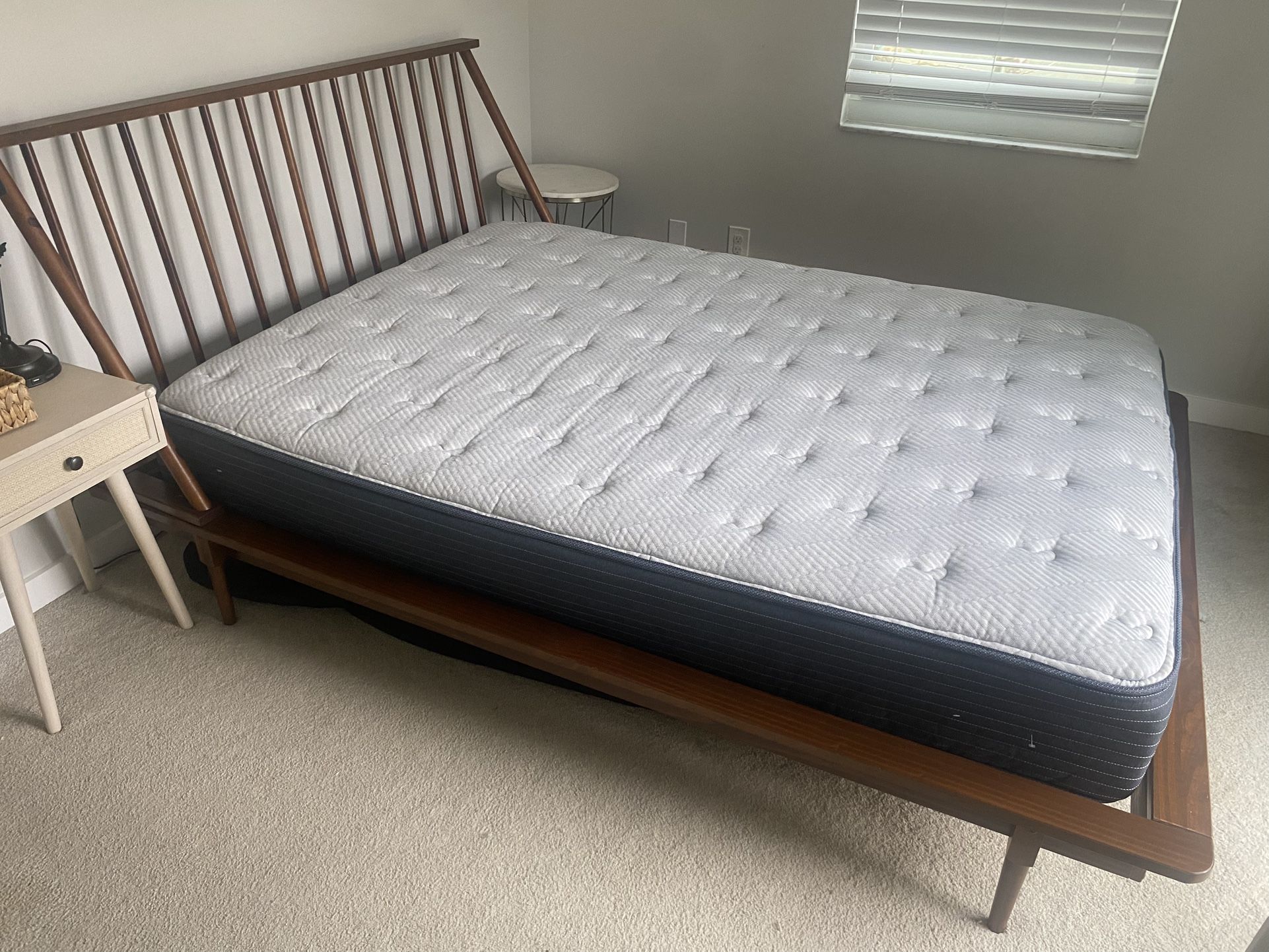 Wooden queen sized bedframe/headboard. Great condition! Will include the mattress if you would like it- it’s only 3 years old and barely used.