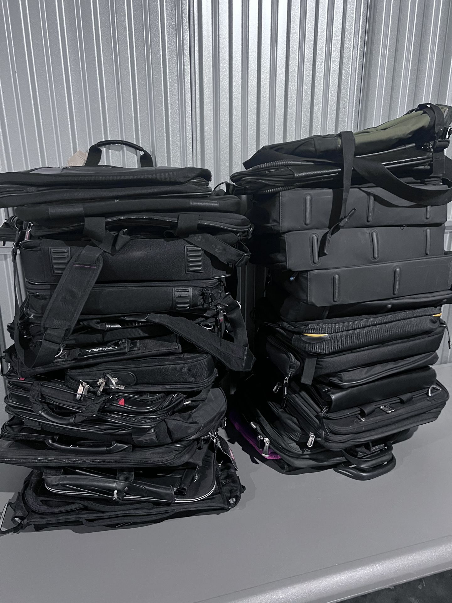 Large mixed lot of travel and laptop bags — great for resale, office use, school programs, or donation. Includes approximately: • 40 laptop / brief bags • 10 rolling laptop bags (wheels + handles) • 8 duffels_attach • 3 garment bags • 2 larger suitcases • misc small bags Mostly mid-tier brands (SwissGear-style quality). All in usable condition — some cosmetic wear from normal use. Selling as one lot only — not separating. Great resale opportunity or bulk pickup. $350 OBO — pickup only