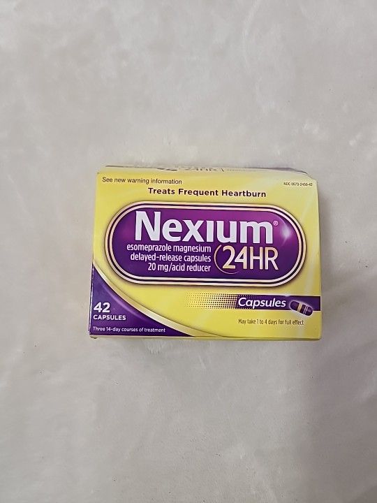 Nexium 24 HR Acid Reducer, 42 Capsules EXP 06/26. Nexium 24HR Acid Reducer Heartburn Relief Capsules for All-Day and All-Night Protection from Frequent Heartburn Esomeprazole magnesium