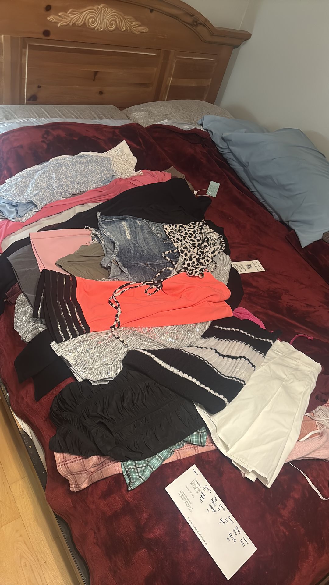 All new never worn most still have tags. $100 takes all (More to come) -to be cont- Three shirts 7 tops - 2 pants - 3 shorts - 5 skirts - 6 dresses - 3 nightgowns - 2 leggings - 3 skorts 1 pair of warm shin socks pink