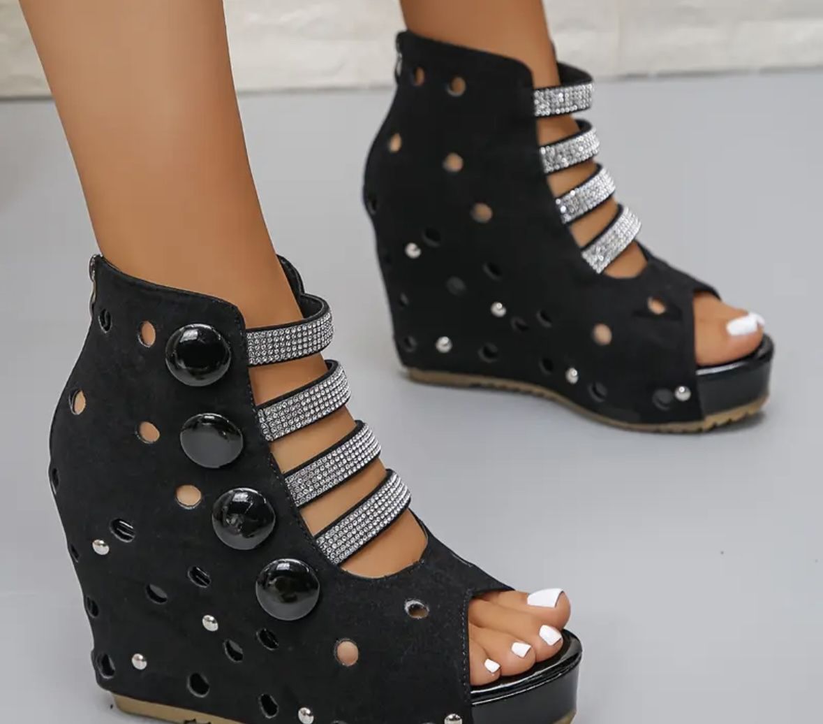 Beautiful Black And Silver Wedges.