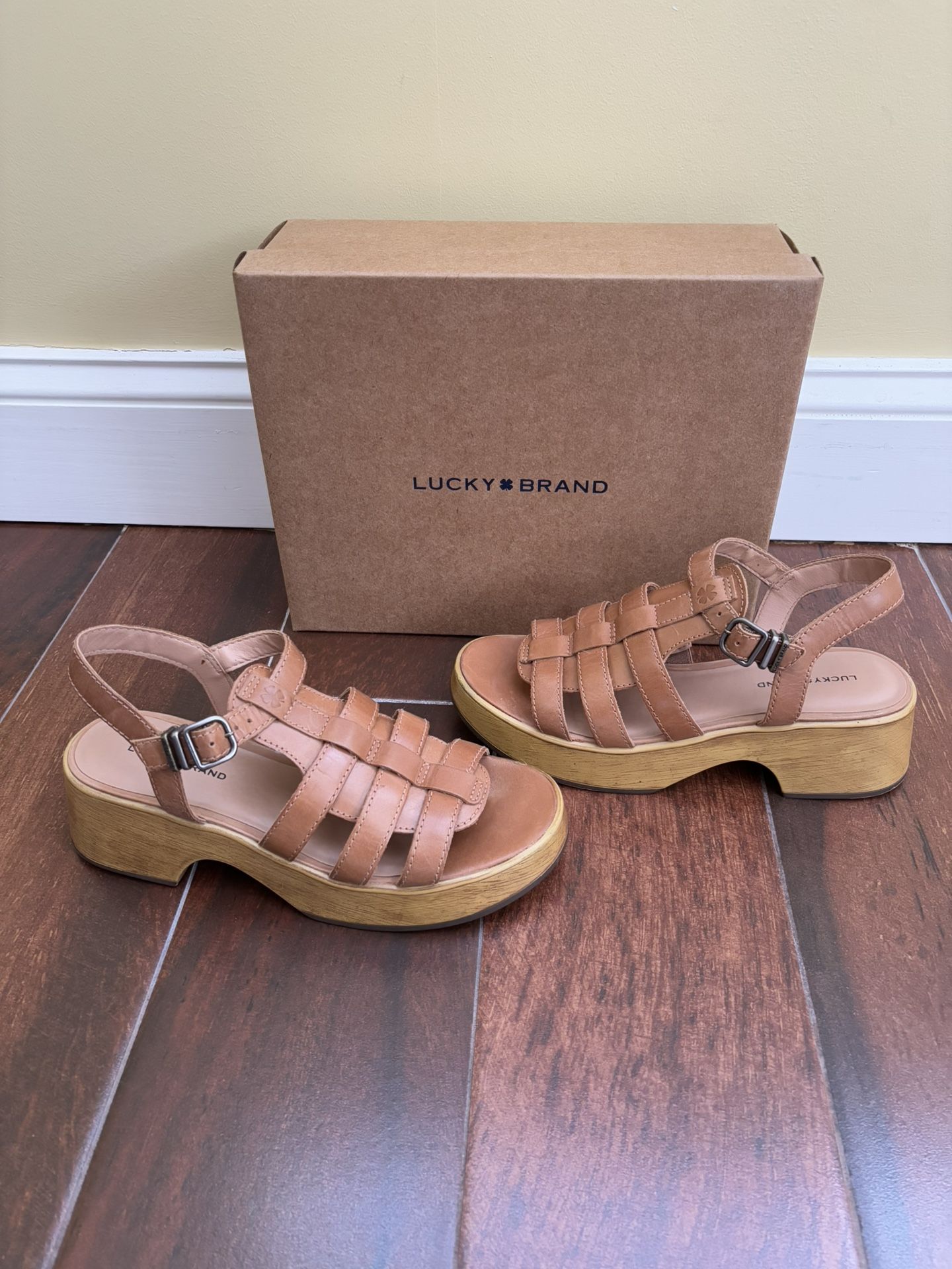 Lucky Brand sandals Color:Latte Size: 7 Perfect condition - box included Style: Platform Sandals Material: Leather Heel Height: 2 inches Serious buyers only please I’m in Fort Lauderdale/ Oakland Park area. Pick up only.