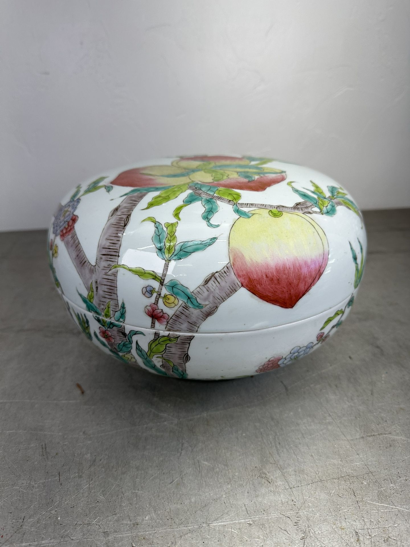 Antique Chinese Porcelain Hand Painted Covered Bowl Peach Fruit Qing Style