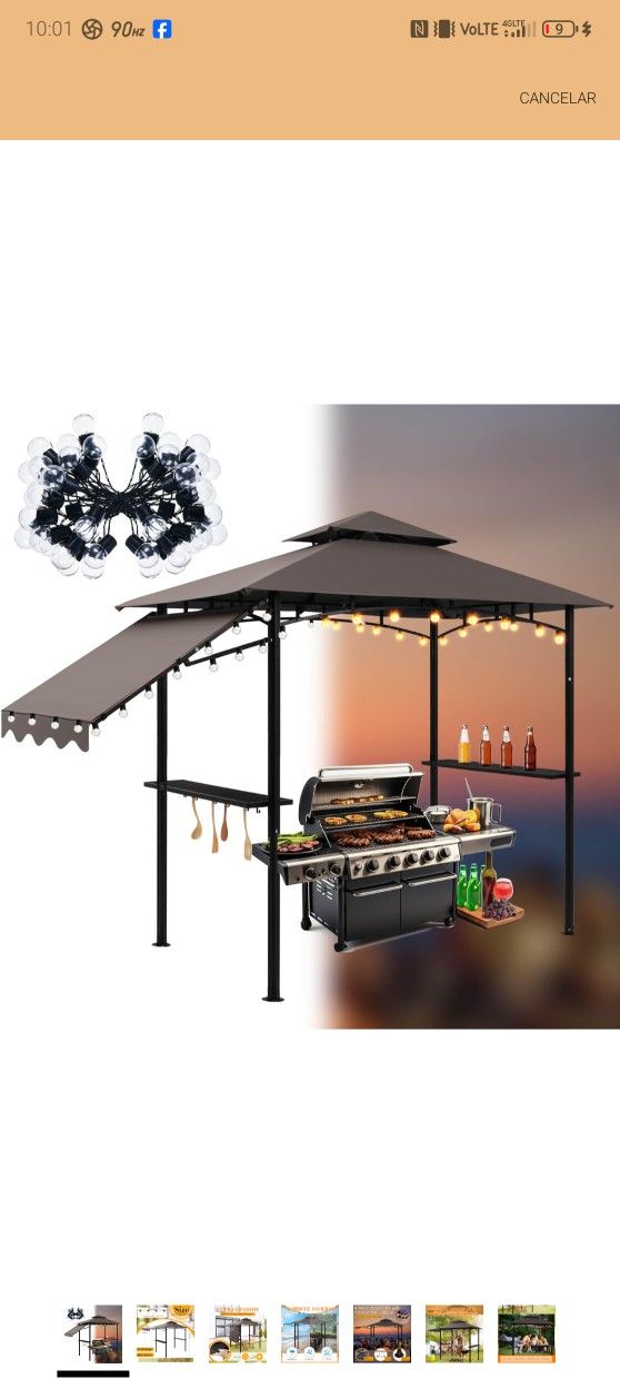 5 x 11 ft Grill Gazebo with Extra Shade, Outdoor String Lights, Outdoor BBQ Awning, Additional Side Awnings, and LED Lights with 40 Waterproof Bulbs