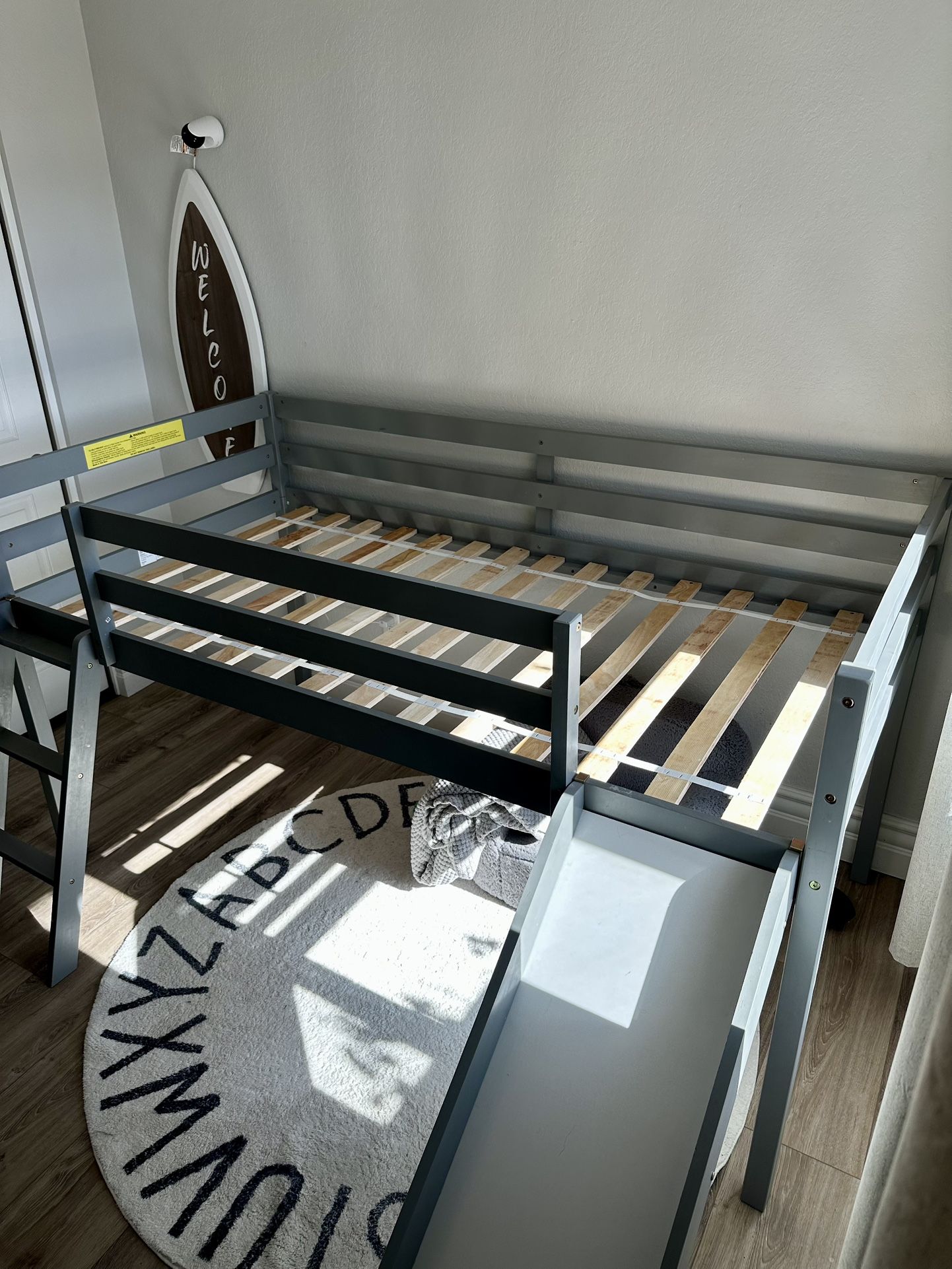 Size: Twin Material: Pine Wood Dimensions: 81.4"L x 41.8"W x 44.4"H Condition: Great Requires disassembly.