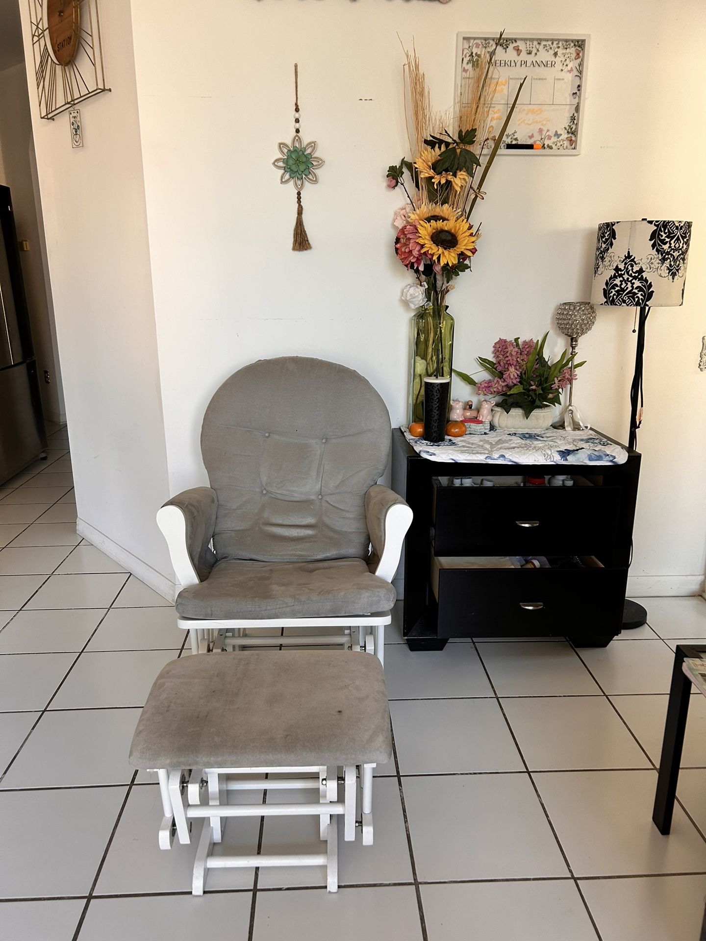 Message me for information β ππ it including the rocking chair, tha dresser and the lamp