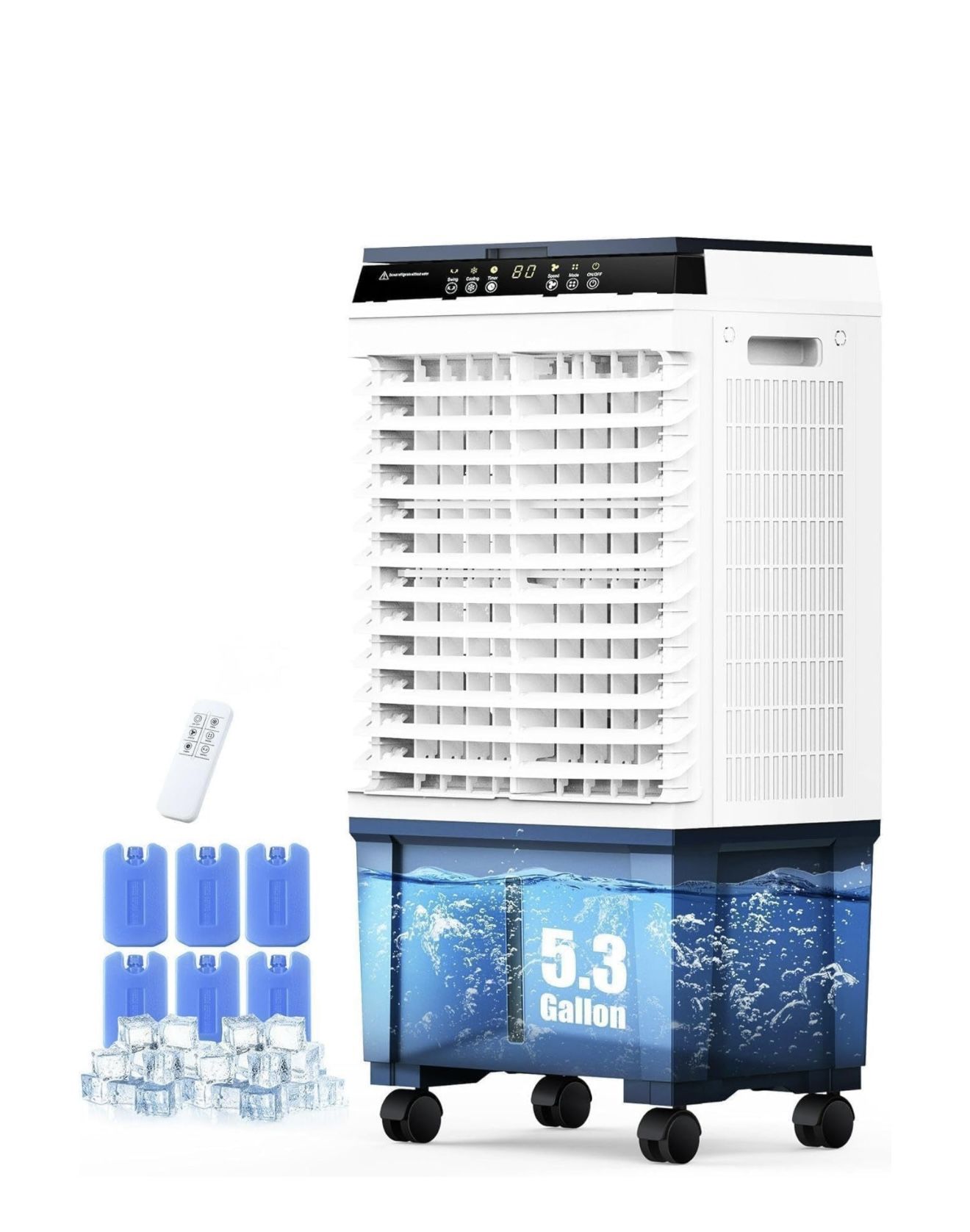 Swamp Cooler, 1800 CFM Evaporative Air Cooler with 5.3 Gal Water Tank, 110° Swing, 3 Speeds, 4 Ice Box, Remote, 12H Timer,