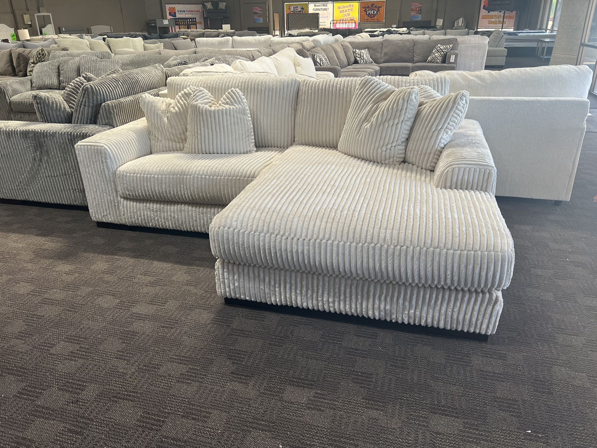 Brand new sectional. Thick soft corduroy fabric, cream or grey available. Plush deep cushions. Extra wide chaise. Available in other sizes and configurations. Delivery and payment plans available