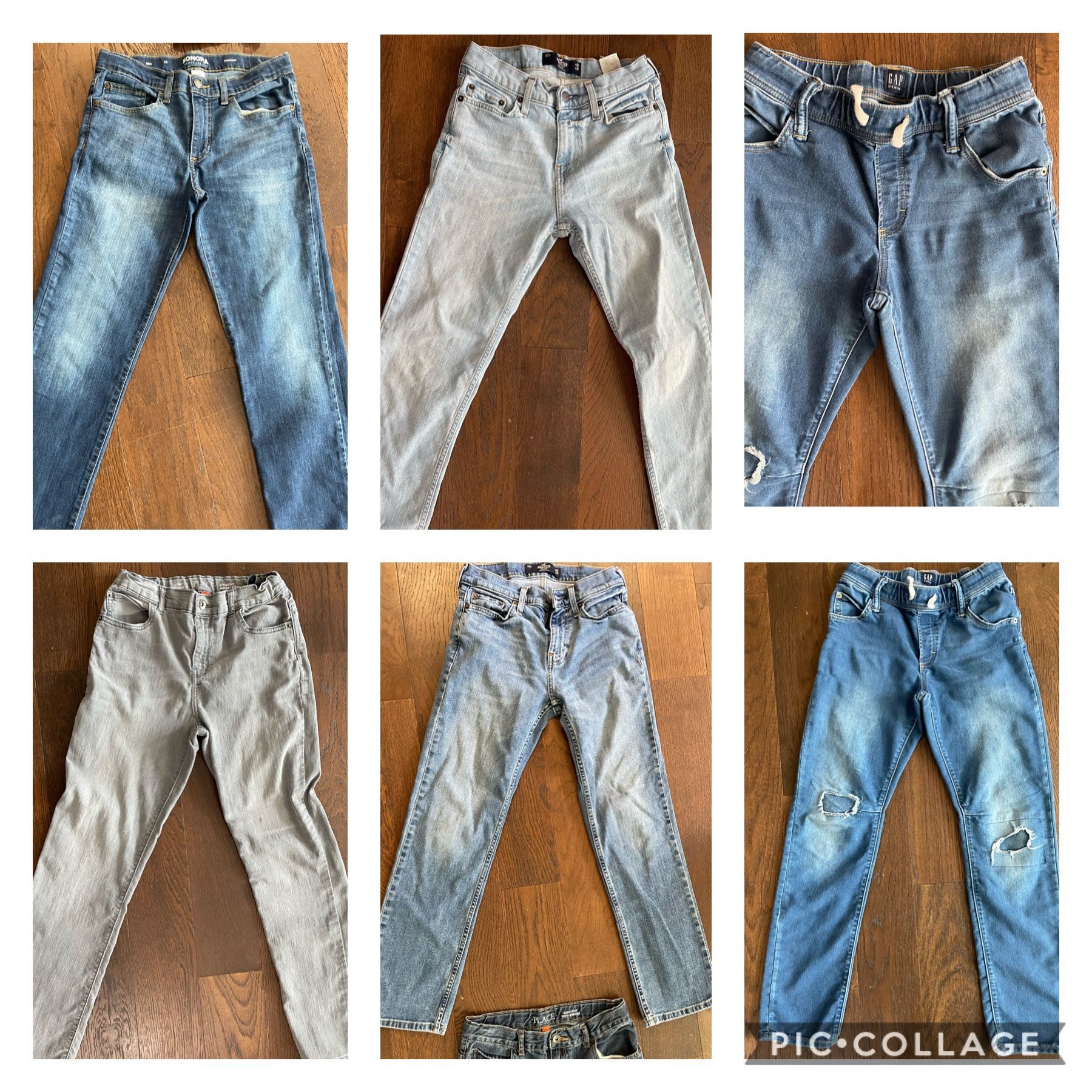 Hollister size 26/30 $15 Children’s place size 14 $10 Gap size XXL $15 Sonoma size12 $10