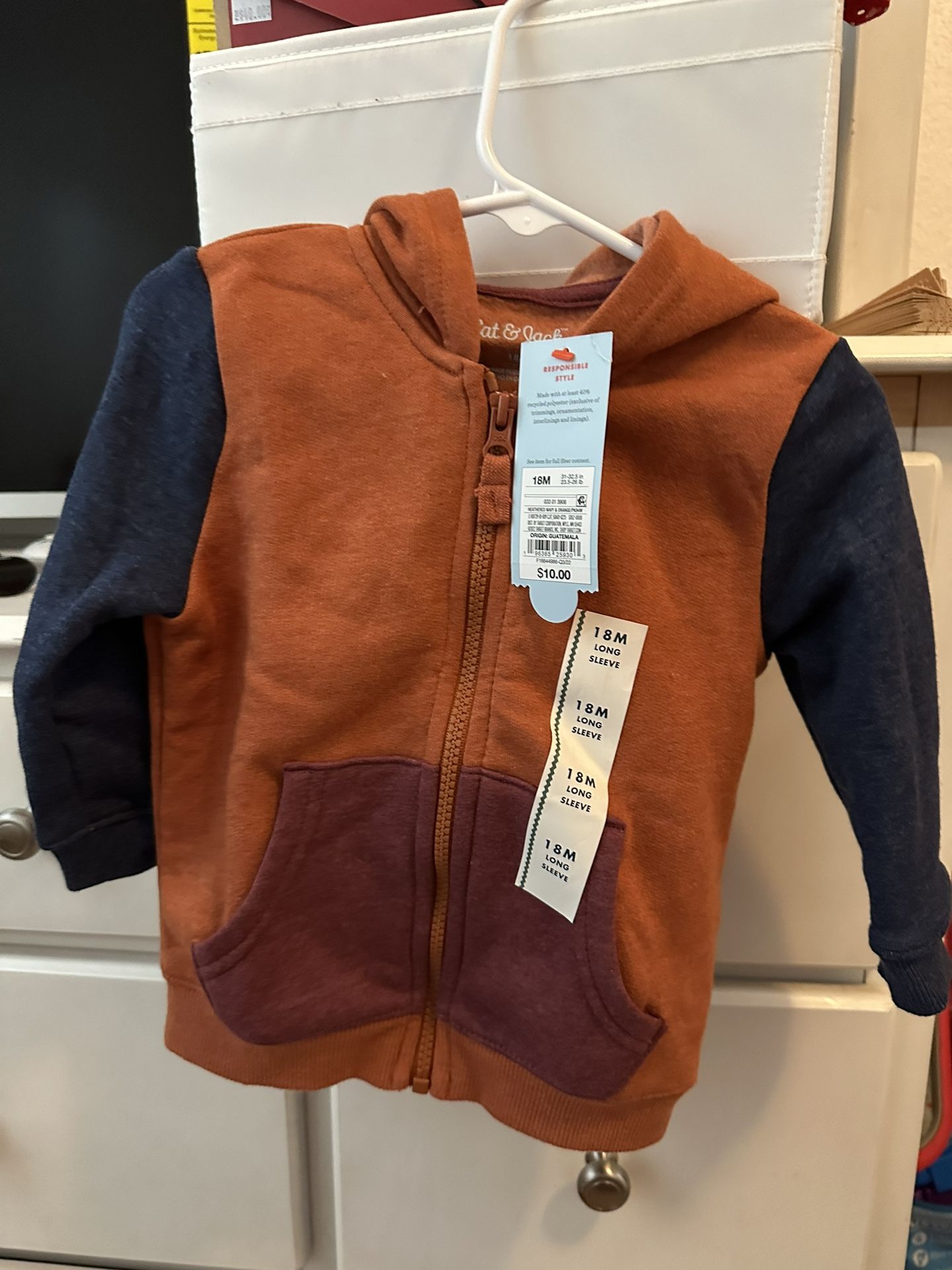 New toddler sweater. Fleece inside so it’s warm. My son grew out this size and didn’t get to use it. Size 18 months