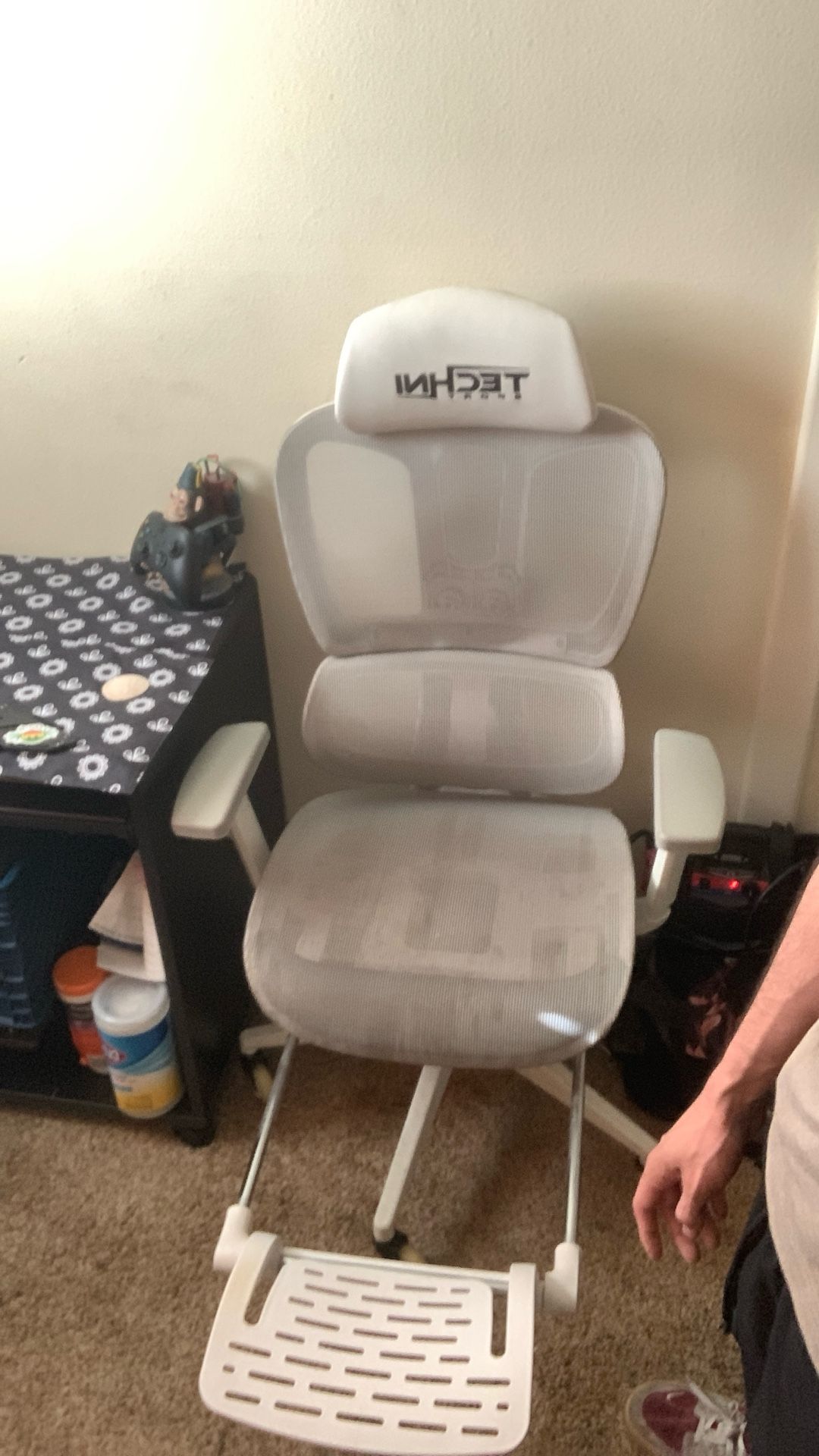 White gaming chair with leg rest. Dirty but can be cleaned . Used a few times. Mostly collected dust in garage.