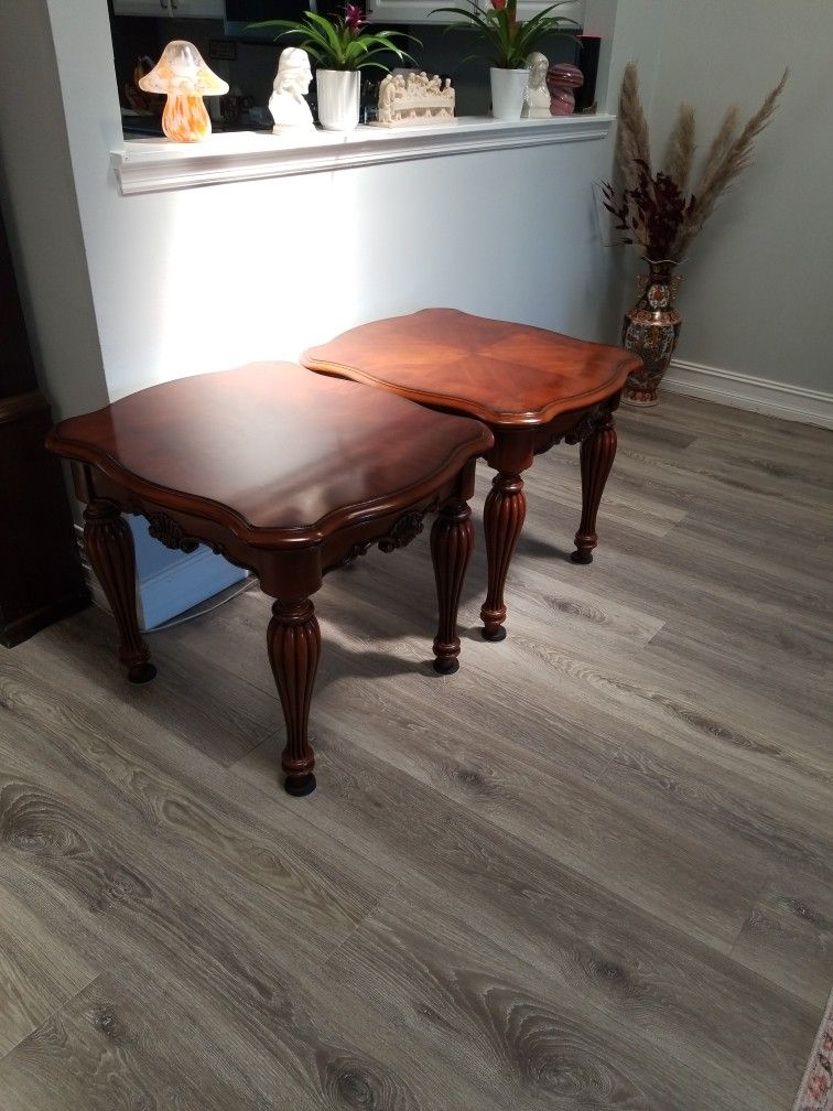 Pair of end tables in good condition. Approximately 22 x 24 inches, Heavy.